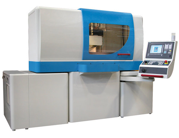 Станок оборудован цифровым ЧПУ 840DI производства Siemens, снабженным приводами, двигателями и контролем положения по датчику Heidenhain, тогда как шлифовальный стол перемещается при помощи пропорционального клапана со встроенной электроникой DXJ3-DOL/40 производства Duplomatic. Клапан совместно с датчиком положения Heidenhain, который имеет разрешение в тысячные доли, позволяет при обычных оборотах получить высокую точность позиционирования. Скорость перемещения стола составляет 40 м/мин; точность позиционирования и останова 0,01 мм. Простой и интуитивно понятный интерфейс позволяет импортировать чертежи из файлов DXF, для создания профиля любого вида.