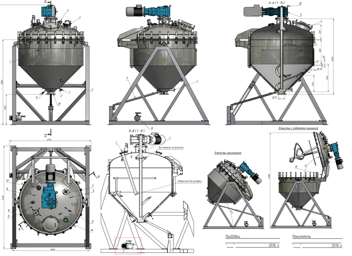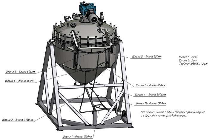 Гидростанция предназначена для управления гидроцилиндрами подъема крышки со шнеком и наклона емкости. Смеситель конусный применяется для смешивания твердых сыпучих или порошкообразных компонентов, что позволяет значительно сократить время их перемешивания.