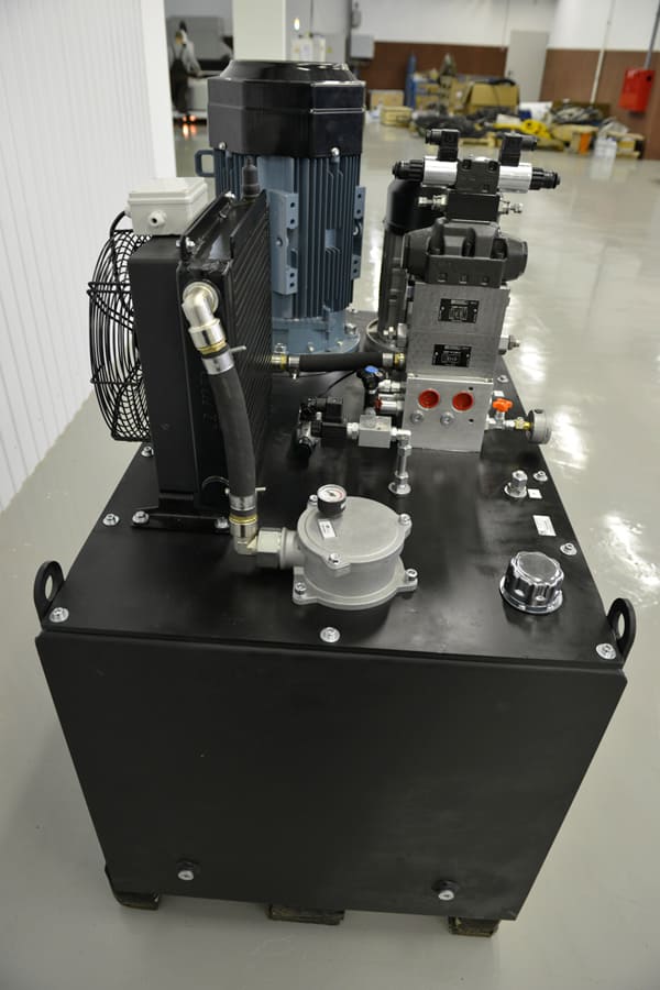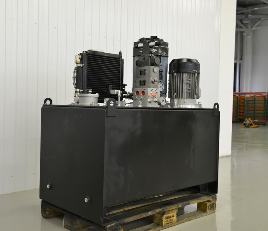 Гидростанция предназначена для управления исполнительными механизмами пресса ПД476. Применяемая гидравлическая аппаратура итальянского производства компании Duplomatic является унифицированной и взаимозаменяемой с современными аналогами зарубежных и отечественных производителей. В качестве основного силового агрегата использована мотор-насосная группа с аксиально-поршневым насосом. Тонкость фильтрации сливного фильтра - 25 мкм, всасывающего фильтра - 90 мкм. Контур кондиционирования и фильтрации рабочей жидкости реализован на базе воздушных теплообменников, установленных на сливной магистрали системы. Контроль температуры рабочей жидкости осуществляется посредством датчиков температуры. Гидравлический агрегат производится в соответствии с общепризнанными техническими правилами. После сборки агрегат проходит обязательные испытания. Гарантийный период составляет 24 месяца с момента ввода в эксплуатацию, но не более 30 месяцев с даты отгрузки, при условии, что оборудование установлено и эксплуатируется в соответствии с требованиями Технико-эксплуатационной документации. Гарантия не распространяется на быстроизнашивающиеся элементы (фильтроэлементы, резиновые баллоны для гидроаккумулятора, РВД, манометры и т.д.).
