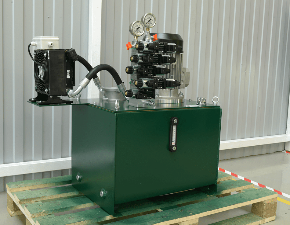 В качестве основного силового агрегата использована мотор-насосная группа с аксиально-поршневым насосом. Тонкость фильтрации сливного фильтра - 10 мкм, всасывающего фильтра - 90 мкм. Контур кондиционирования и фильтрации рабочей жидкости реализован на базе воздушных теплообменников, установленных на сливной магистрали системы. Контроль температуры рабочей жидкости осуществляется посредством датчиков температуры. Гидравлический агрегат производится в соответствии с общепризнанными техническими правилами. После сборки агрегат проходит обязательные испытания.