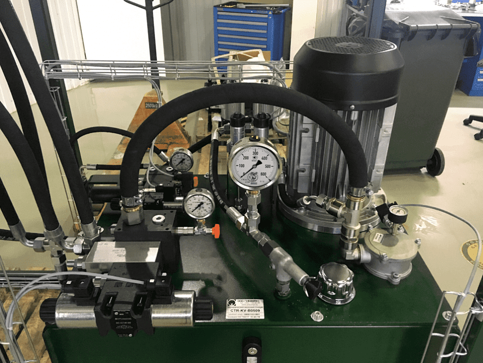 - Гидростанция CTR-KV-B0509 предназначена для управления гидроцилиндром пресса, который обеспечивает создание усилия до 500 тс при проведении испытаний.