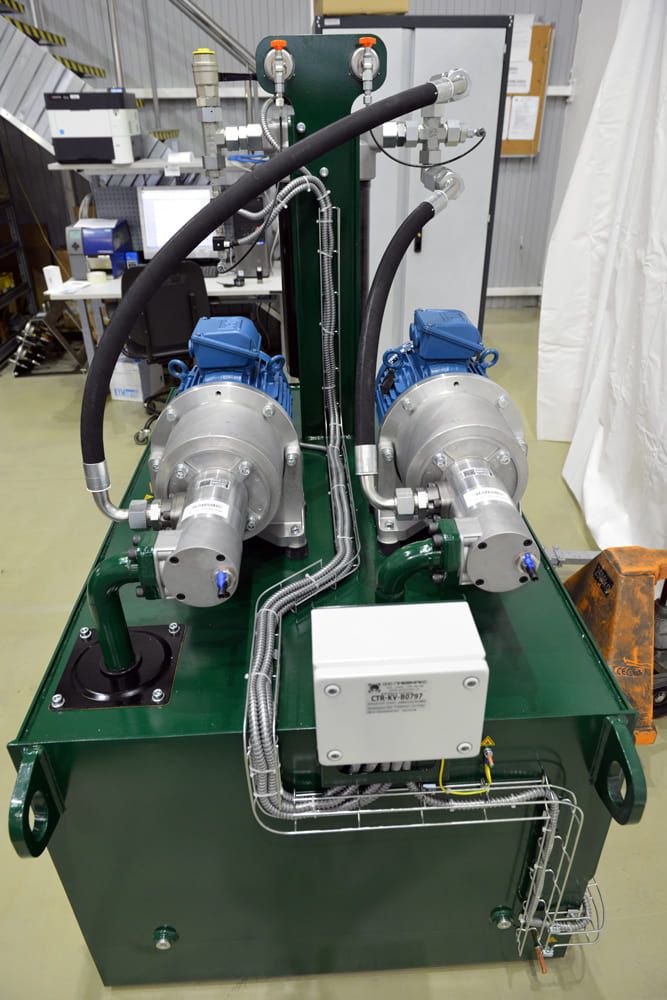 - В качестве силовых агрегатов использованы две мотор-насосные группы, каждая из которых состоит из нерегулируемого винтового насоса и электродвигателя.