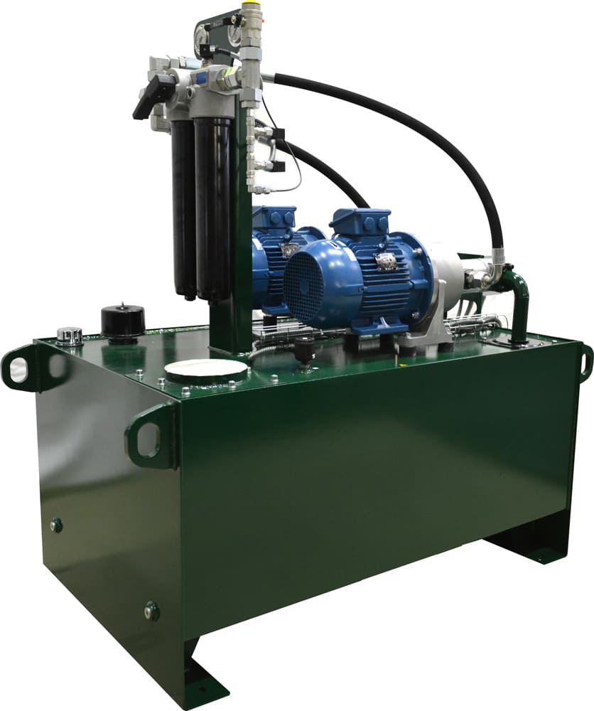 - На гидростанции установлены все необходимые датчики для удаленного контроля работы и обеспечения безопасности оборудования: контроль давления, максимальной температуры, опасного и аварийного уровня рабочей жидкости в баке, состояние фильтрующего элемента.