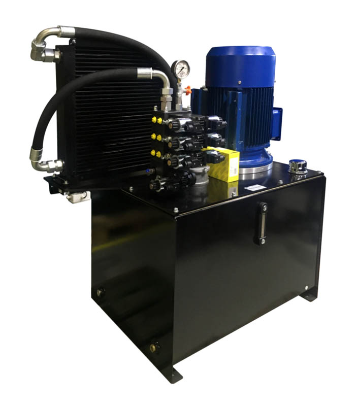- На гидростанции установлены все необходимые датчики для удаленного контроля работы и обеспечения безопасности оборудования: контроль давления, максимальной температуры, опасного и аварийного уровня рабочей жидкости в баке, состояние фильтрующего элемента.