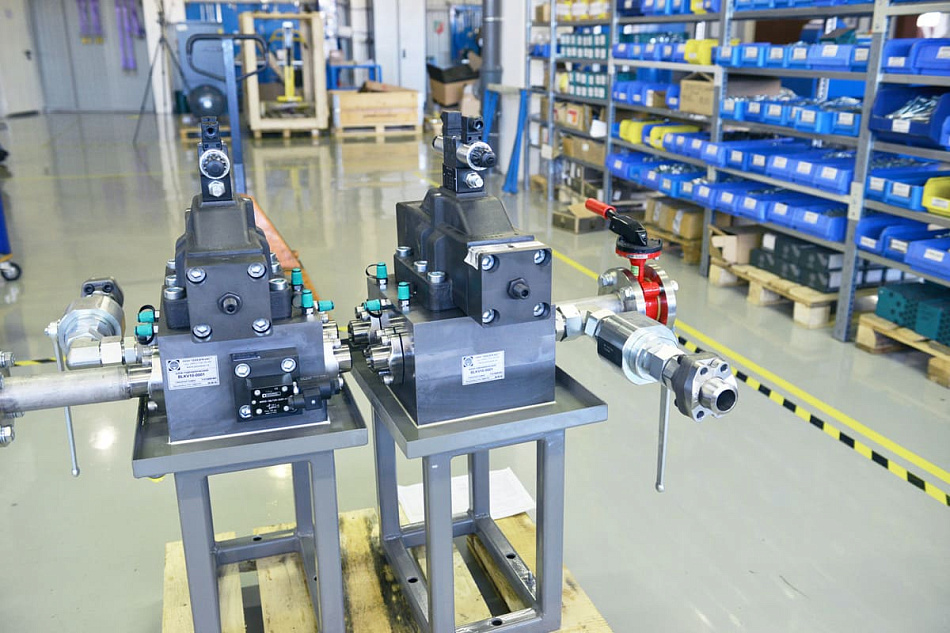На каждой мотор-насосной группе установлен сдвоенный фильтр с механизмом быстрого переключения. На каждом шаровом кране установлены датчики положения для удаленного мониторинга их состояния. В качестве основного и резервного силовых агрегатов использованы три мотор-насосные группы, каждая из которых состоит из регулируемого аксиально-поршневого насоса с регулятором постоянного давления и электродвигателя. Гидростанция рассчитана на одновременную работу 2 мотор-насосных групп. Контур кондиционирования рабочей жидкости состоит из пластинчатого водяного теплообменника и отдельного винтового насоса. Тонкость фильтрации напорных фильтров - 10 мкм, фильтров контура циркуляции и охлаждения - 10 мкм, сливных фильтров - 25 мкм.
