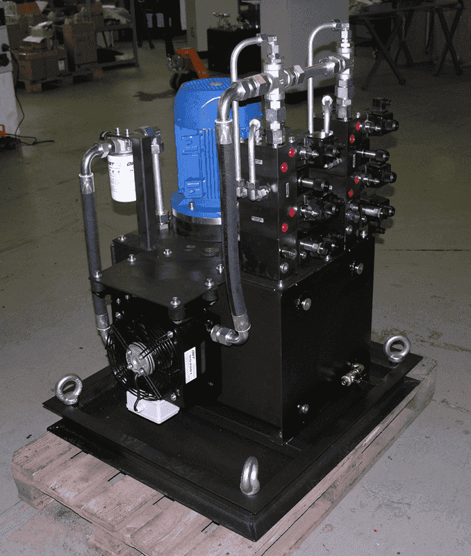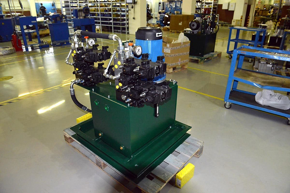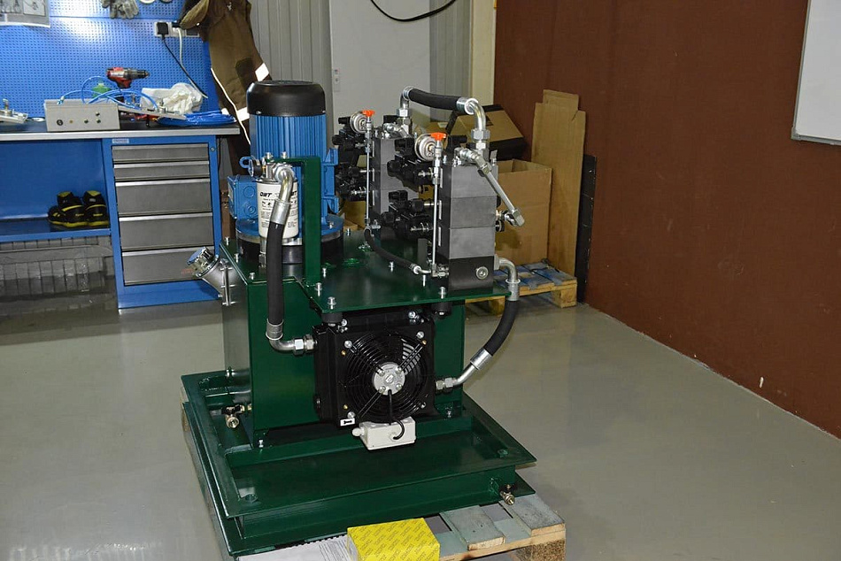 - По требованию заказчика, гидростанция оборудована поддоном для исключения пролива рабочей жидкости на покрытие цеха при выполнении монтажных работ, а так же при обслуживании и ремонте гидростанции.