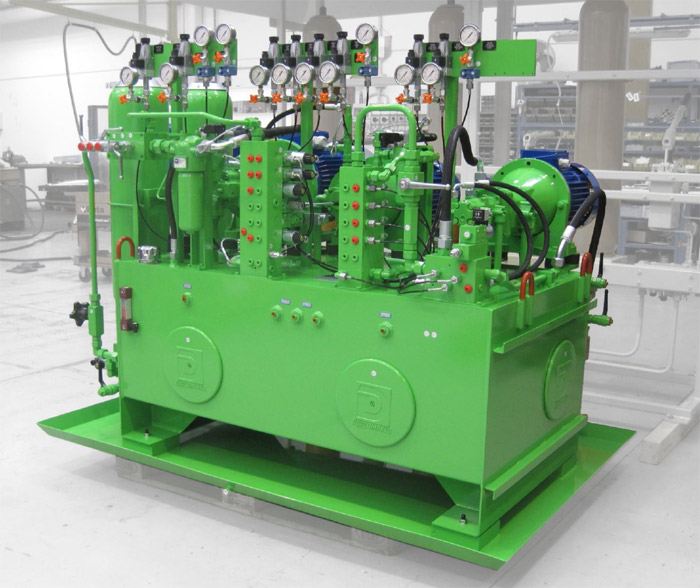 - основной мотор-насосной группы с регулируемым аксиально-поршневым насосом VPPM для питания 6-ти гидравлических блоков, которые управляют положением и усилием прижима каландровых валов;
