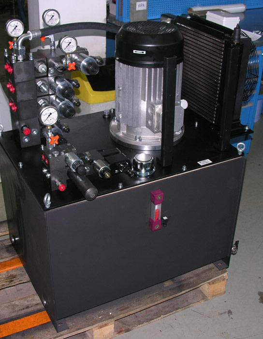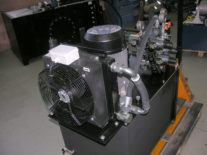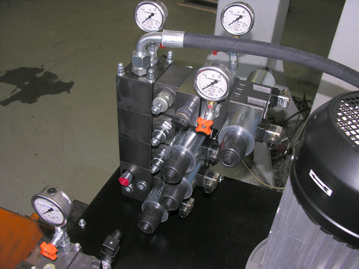 Создана гидросистема, смонтированная на баке с пропорциональным регулятором давления для автоматического увеличения усилия зажимов при повышении испытательного давления.