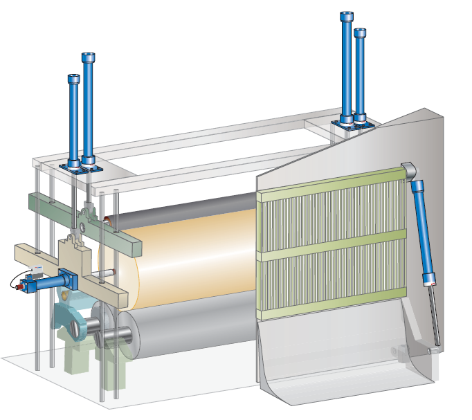 Равномерная размотка или намотка бумажного полотна достигается благодаря гибкому регулированию расправочных валиков. Для удержания валика применяются гидравлические цилиндры серии HC2 с уплотнениями с низким трением, которые крепятся к его обоим концам. Цилиндры работают совместно с управляющими распределителями DXJ3 и DSPE7XJJ или DSPE7J.