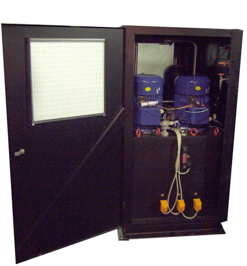 Маслостанция включает в себя два рабочих насоса (основной и резервный); контур подачи рабочей жидкости на охлаждение и фильтрацию с отдельным насосом; два гидрораспределителя с электромагнитным управлением (рабочий и резервный); блок аварийного закрытия шибера состоящий из аккумулятора и ручного гидрораспределителя; рукава высокого давления в защитной высокотемпературной оболочке, оснащённые надёжными быстроразъёмными соединениями. Конструкция быстроразъёма предусматривает моментальное рассоединение в аварийной ситуации; электрический шкаф с пуско-регулирующей аппаратурой и индикацией, расположенный на площадке балкона; комплект запасных частей; автоматический контроль поддержания температуры рабочей жидкости в баке в диапазоне от +15° до + 45° С.