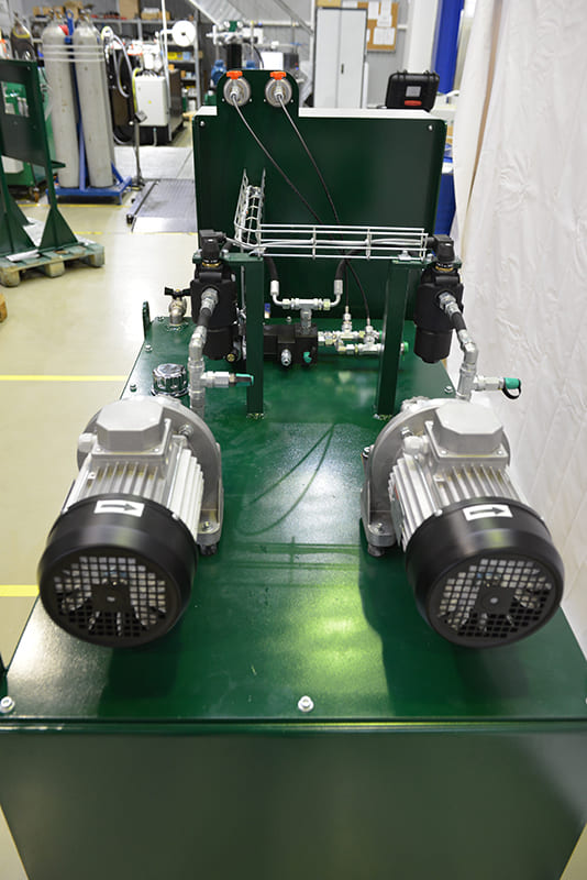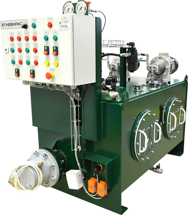 - В качестве основного силового агрегата использованы две мотор-насосные группы (основная и резервная), состоящие из нерегулируемых шестеренных насосов и электродвигателей.