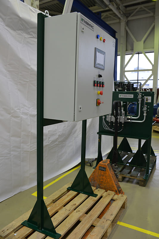 - На гидростанции установлены все необходимые датчики для контроля работы и обеспечения безопасности оборудования: контроль давления, максимальной температуры, опасного и аварийного уровня рабочей жидкости в баке, состояние фильтрующего элемента.